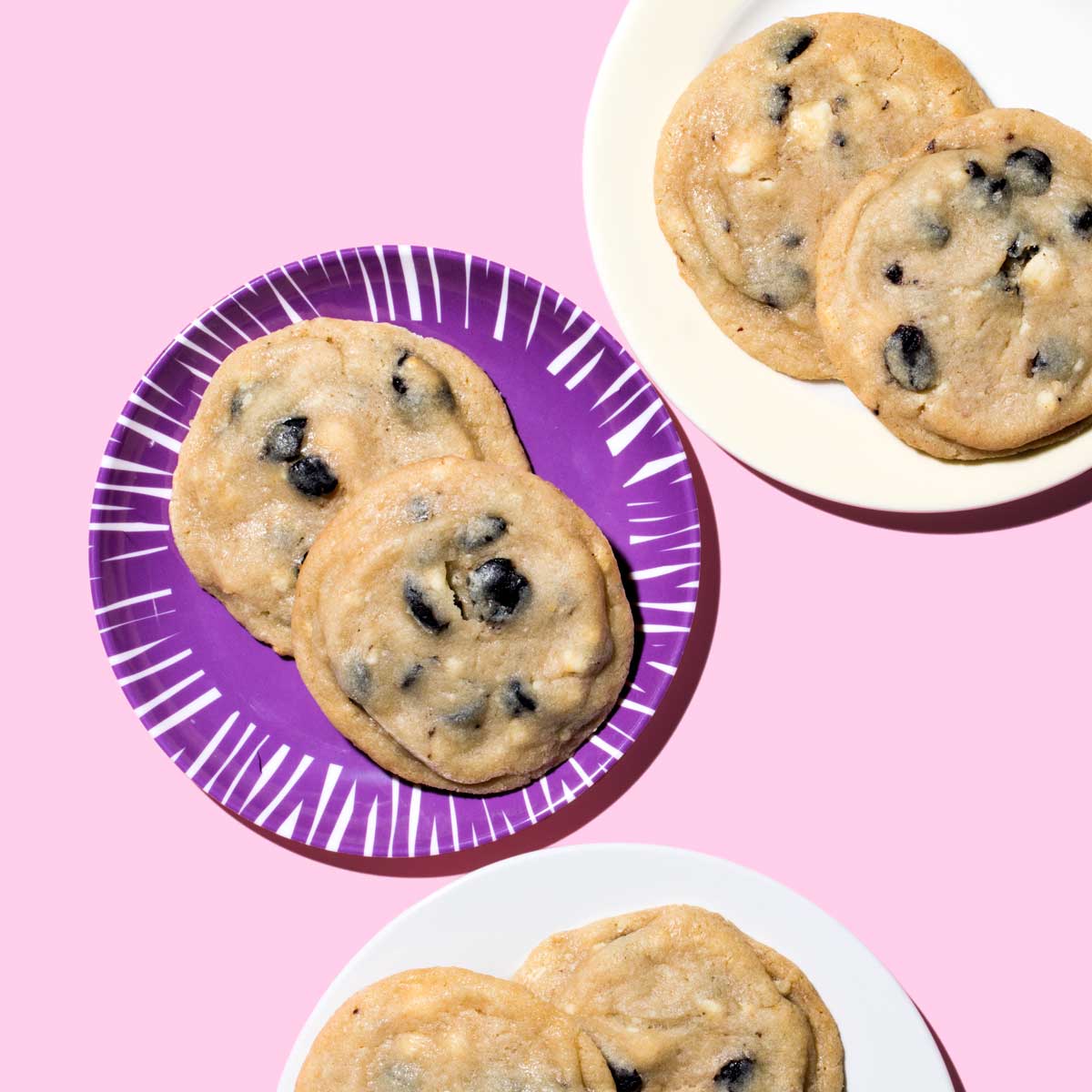A muffin top disguised as a cookie: mini white chocolate chips and bright, chewy dried blueberry bits suspended in a luscious sugar cookie base. Ideal for breakfast consumption… or any-time-of-day consumption.