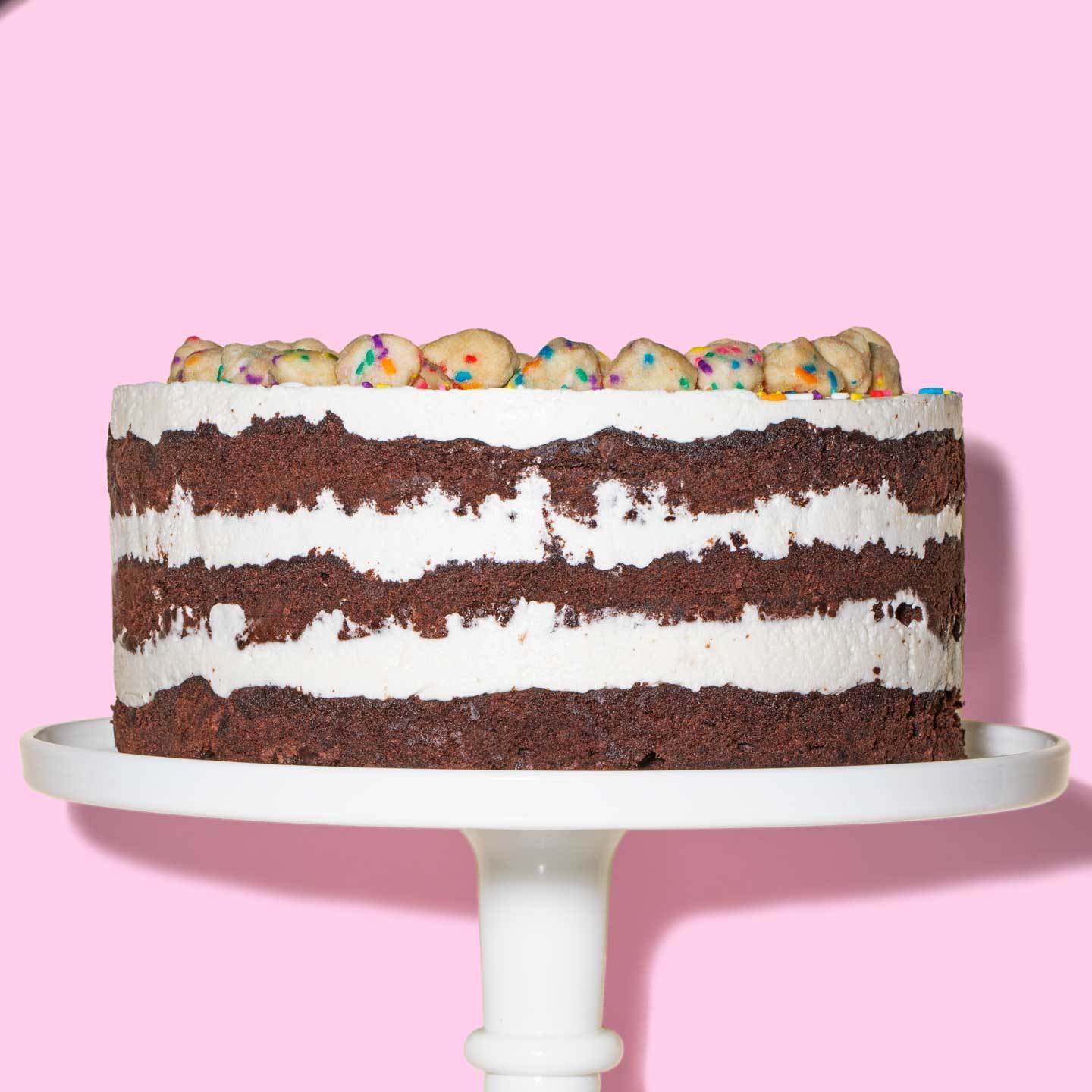 The classic Birthday Cake, but make it chocolate. Decadent chocolate cake plus chocolate chips, layered with creamy Birthday frosting, crunchy Birthday crumbs, and rainbow sprinkles.
