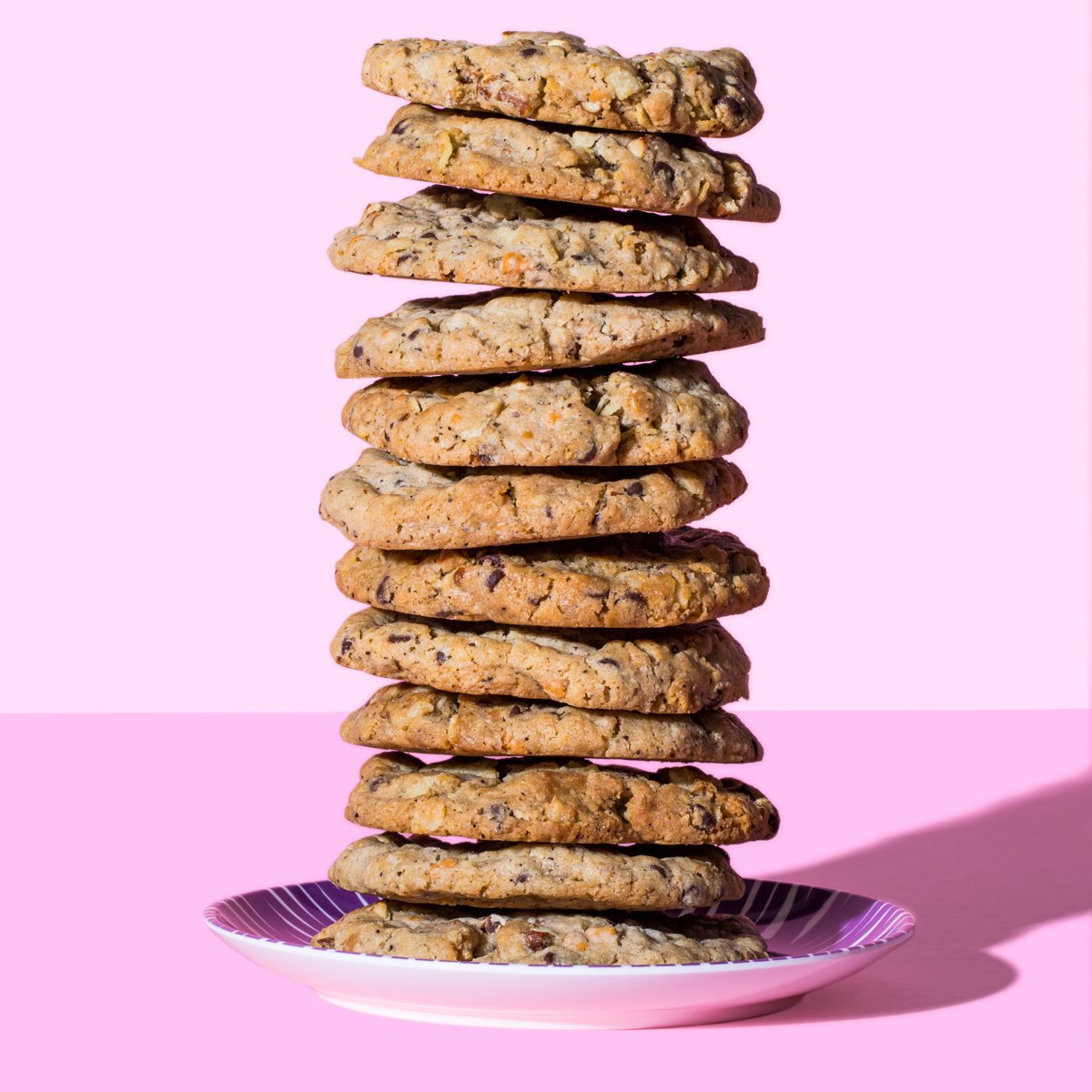The original sweet and salty kitchen sink cookie, with chocolate chips in a deep vanilla base, plus Milk Bar’s five recommended food groups: pretzels, potato chips, graham crackers, coffee, oats, and butterscotch.